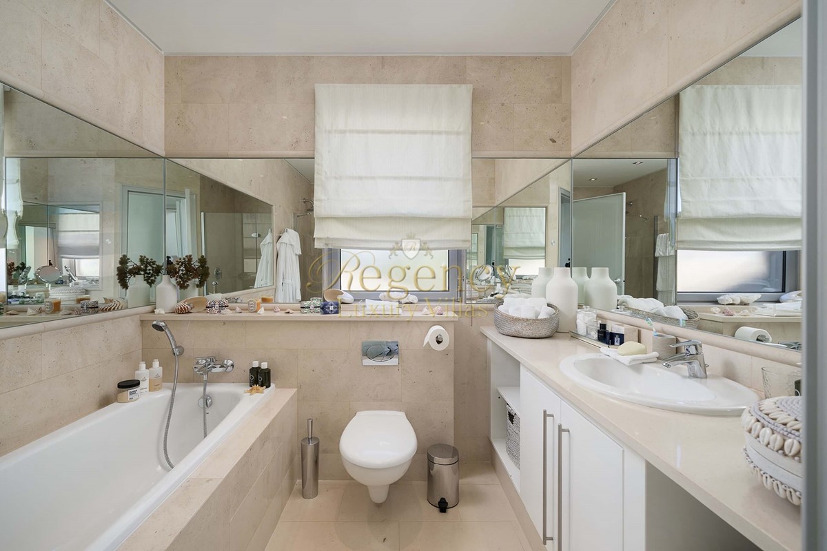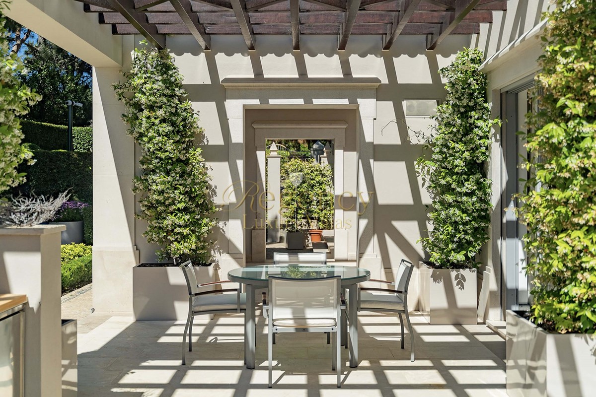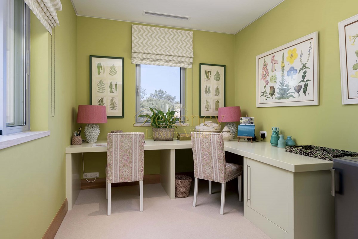 On the ground floor there is a family/TV room, a formal dining room, a superb designer kitchen with family dining, one spacious double bedroom with en-suite bathroom, a single bedroom with separate bathroom and a guest WC. All rooms look out onto the beautifully landscaped gardens, pool or patio terraces.