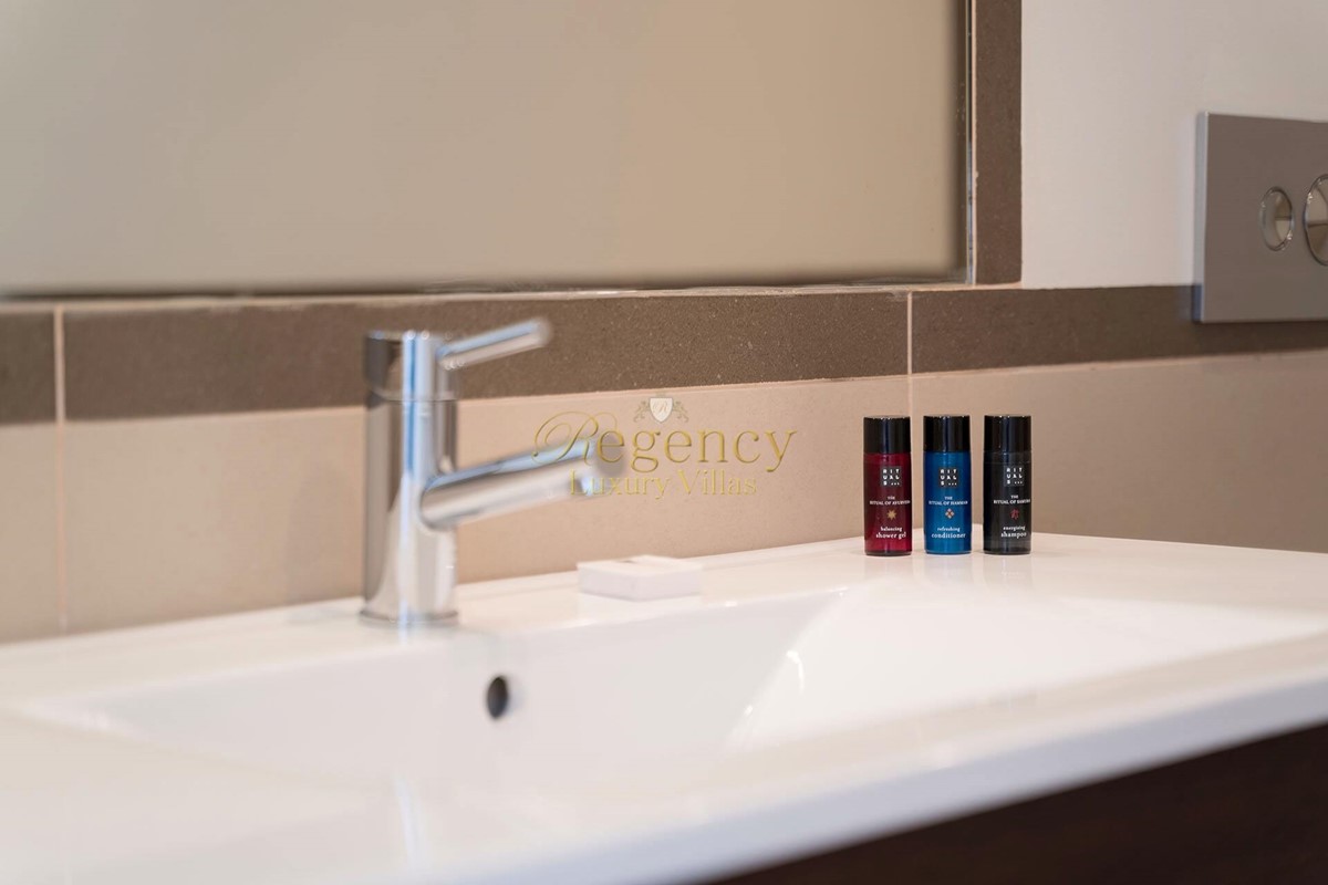 Villa Heliodor has 3 bedrooms and can accommodate up to 5 guests. All the bedrooms are located on the first floor, the master bedroom is en-suite with a shower room and has a balcony from where guests can enjoy the beautiful sunsets. On the ground floor, you will find the open plan kitchen and lounge/dining area with access to the spacious terrace with dining table, lounging area, and gas barbecue, the private swimming pool is located within a few steps down. There is a fence and a gate to make sure the little ones won't access the pool unattended.